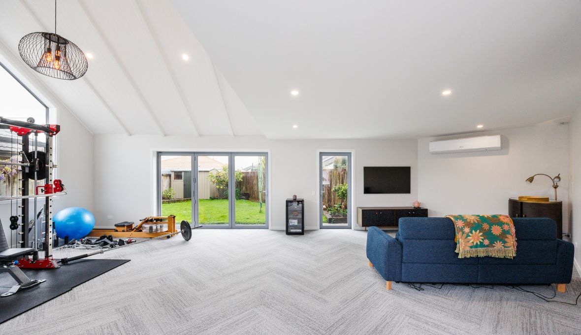 Inside the gym, the new joinery and insulation make a big difference. The temperature is now much more comfortable, making the space ideal for workouts, hobbies, or entertaining.
