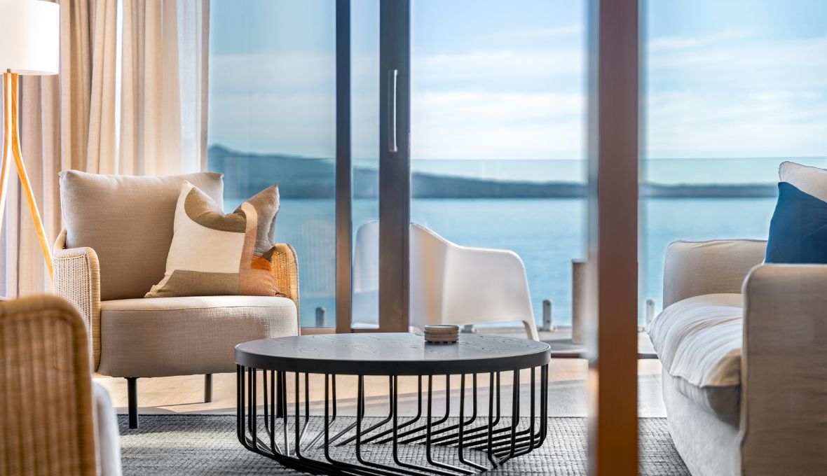 The renovation was full-scale: a streamlined new kitchen, bespoke furniture, contemporary bathrooms, smart storage solutions, updated flooring, interiors to align with the vision and layered lighting. A key design move was widening the balcony doors, creating more natural light, bringing the outdoors in and framing the views.